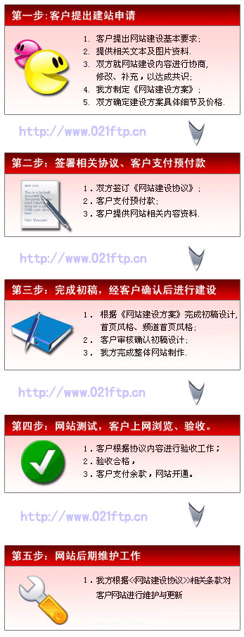 網(wǎng)站建設(shè)的一般流程步驟如下圖,以下步驟圖只是一般性的參考,具體的步驟在實際網(wǎng)站建設(shè)中可能有所簡略。